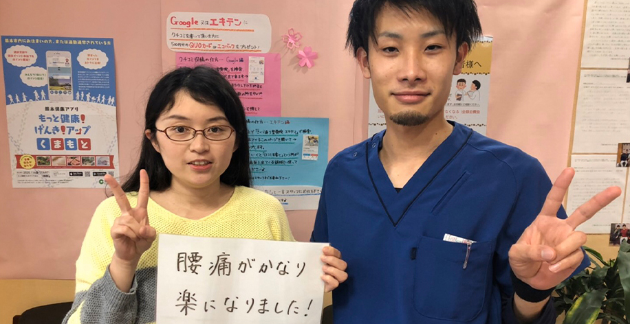授乳や抱っこで腰痛が悪化し、夜もほとんど寝れませんでした。緊張しながら通っていましたが、居心地の良い空間で体の調子がよくなり、気持ちにもゆとりが。体のケアだけでなく、心のケアまでしていただき、精神的なよりどころです。